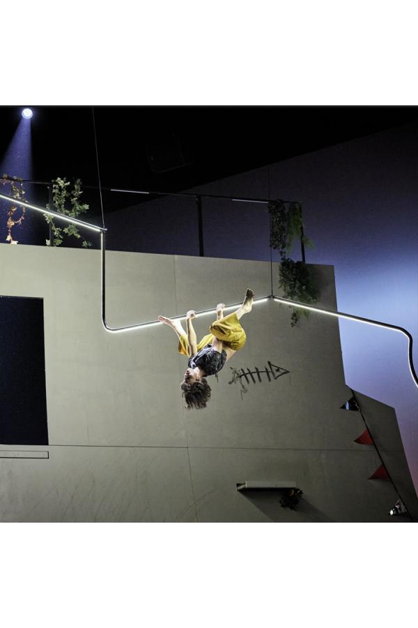 Inspiré par un voyage au Groenland et des histoires d’explorateurs, Mathurin Bolze et ses complices acrobates composent un livre d’images, comme une rêverie à partir de bribes de souvenirs. Dans un espace constamment changeant, un petit groupe d’humains cherche un lieu où séjourner au gré d’un parcours aventureux fait de glissades, d’envols et de suspension. « Immaqaa » signifie « peut-être » en inuit. Cette incertitude, liée au climat dans ces terres inhospitalières, fait écho à l’instabilité de notre époque. Lui répondent sur scène virtuosité, entraide et aspiration à la beauté.