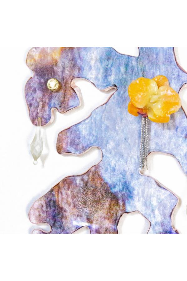 Dans les œuvres de Michel Jocaille, les cadres sont tellement décorés qu’ils en deviennent des œuvres à part entière. En s’inspirant de son travail, créez votre propre cadre photo à partir de la technique du métal à repousser. Choisissez la couleur de votre feuille de métal, découpez votre forme, puis tracez les dessins à l’aide du stylet, avant d’y ajouter strass, sequins et accessoires de votre choix !