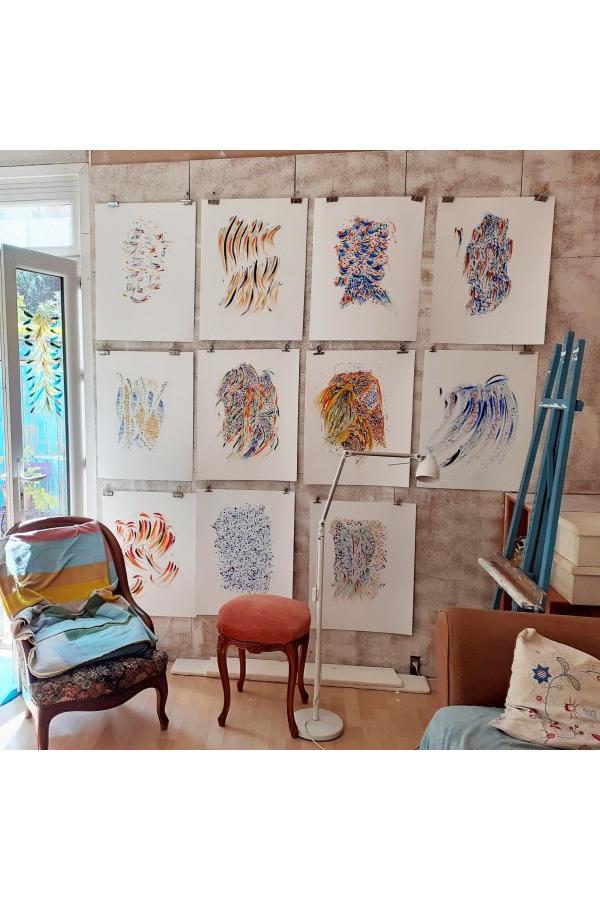 Venez explorer les couleurs de votre signature créatrice avec l’abstraction gestuelle intuitive.