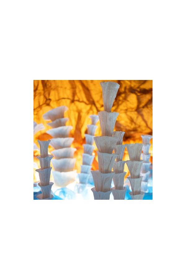 Ses créations, réalisées à partir d’une seule feuille de papier sans collage ni découpe, mêlent pliage et froissage pour donner naissance à des sculptures aériennes et poétiques. Chaque installation naît d’un dialogue avec le lieu, offrant au public une expérience immersive, poétique et onirique