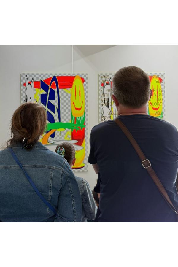 Emprunts directs au hard discount ou à l’esthétique viciée du clipart et du mème, rafistolages, graffitis, coulures, ratures et pixels, tout y passe, à rebours des bons usages de la communication culturelle. Dans l'oeuvre de Christophe Gaudard, les logos poppent, les numéros de téléphone s’exhibent et s’étirent. Des affiches qu’on scrolle à s’en tacher les yeux.