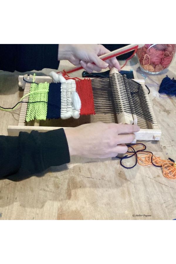 Cette première séquence est également une invitation à découvrir l’histoire du tissage, les différentes matières et armures. Dans un second temps, petits et grands seront invités à expérimenter le tissage sur de petits métiers à tisser en bois.